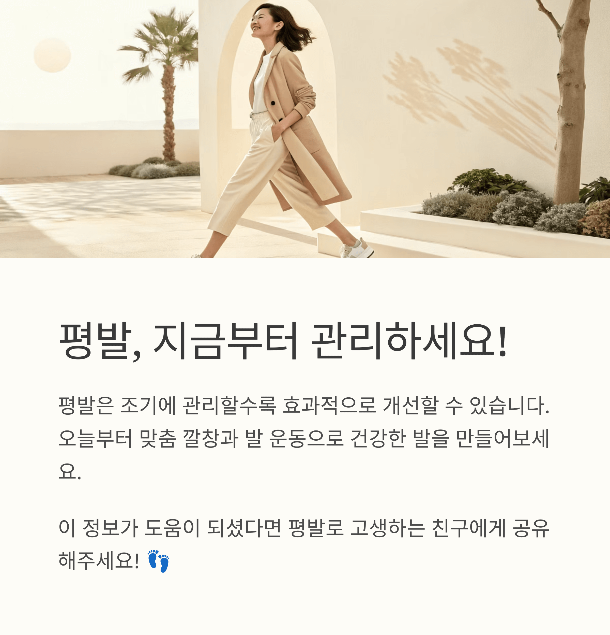 - 규칙적인 스트레칭과 발 근력 강화 운동 수행