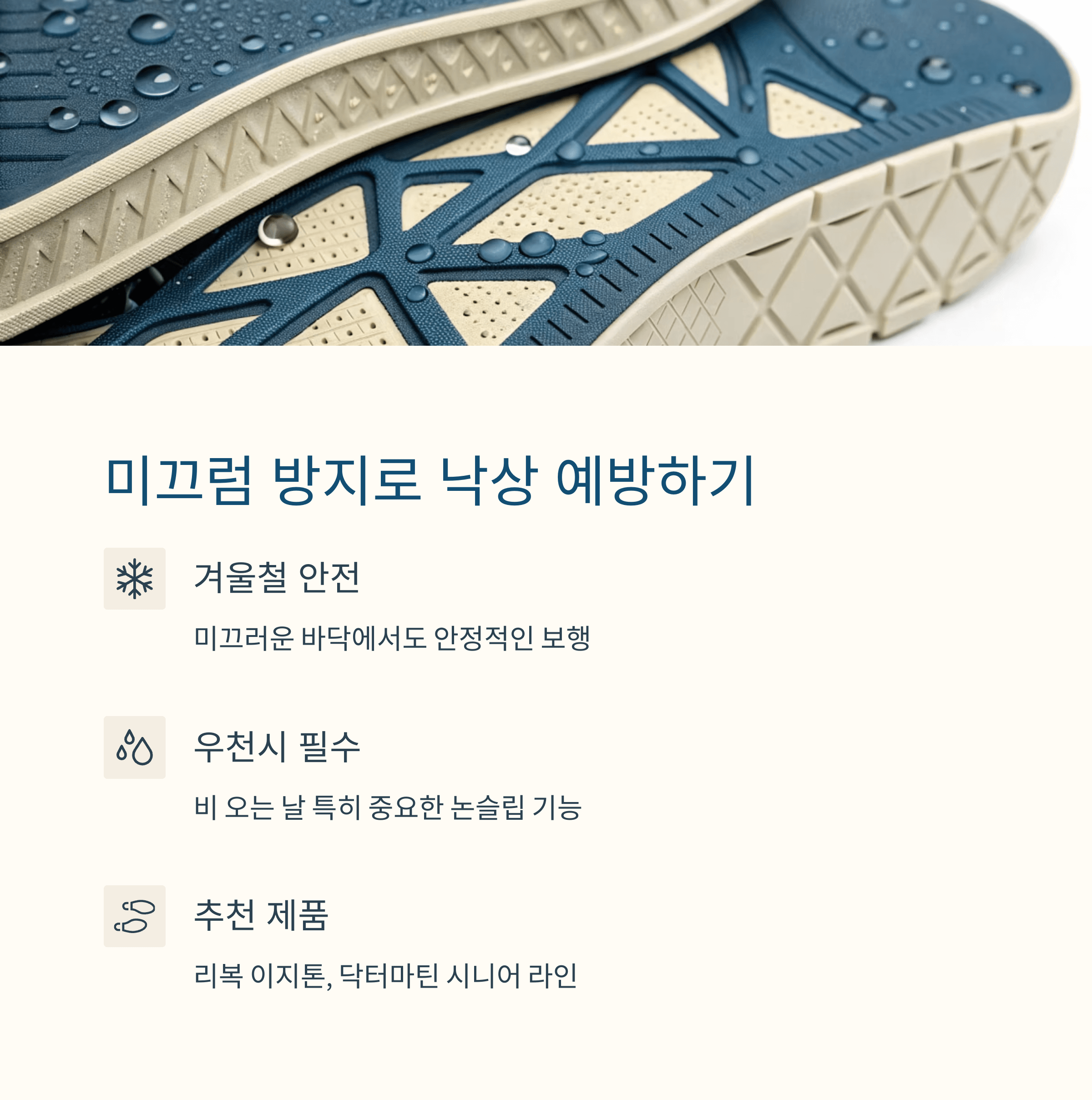 미끄럼 방지 기능: 바닥창의 그립력이 뛰어나야 합니다.