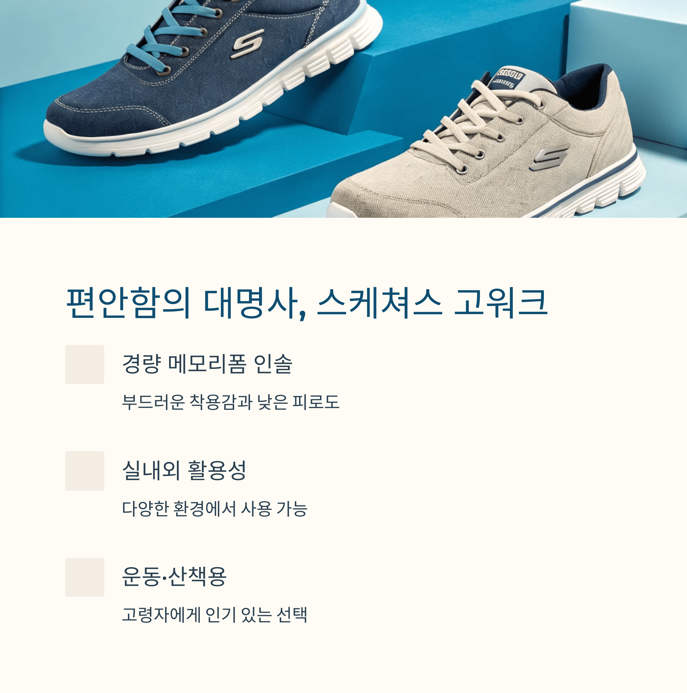 끈 없이 신는 디자인으로 손힘이 약한 어르신에게 적합