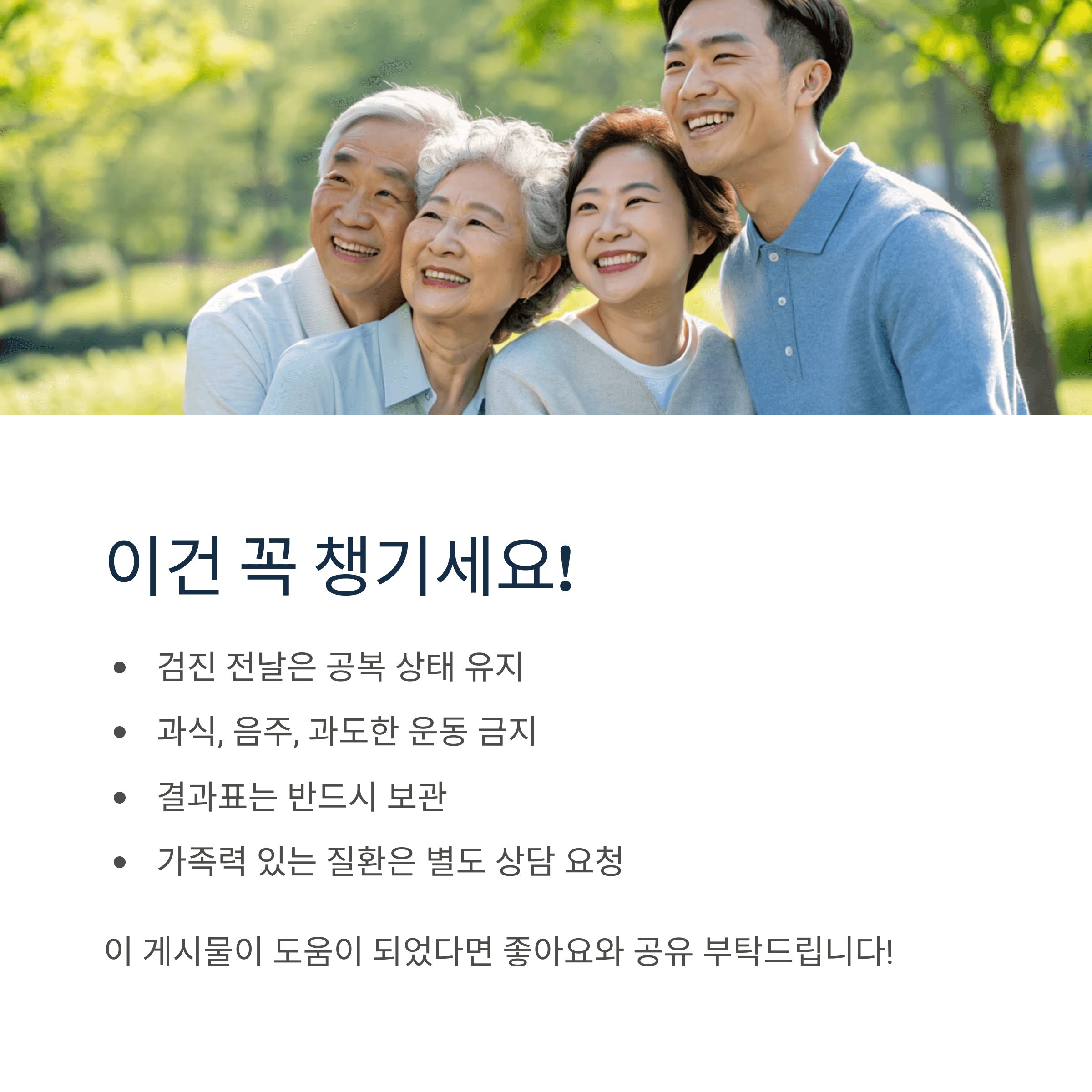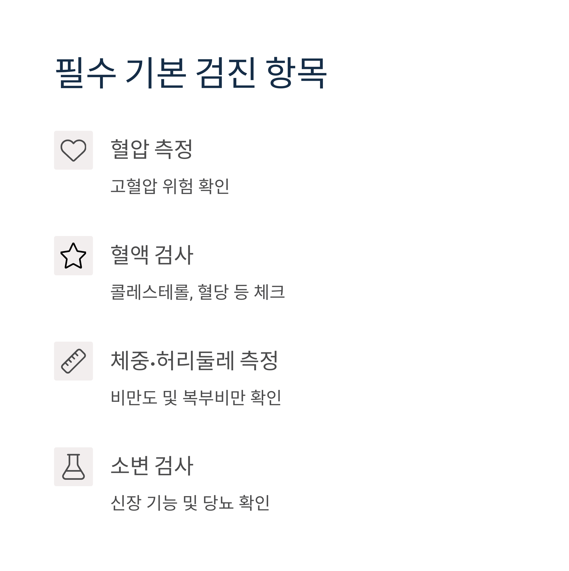 - 혈액 검사 (혈당, 콜레스테롤 등 기본 검사)
