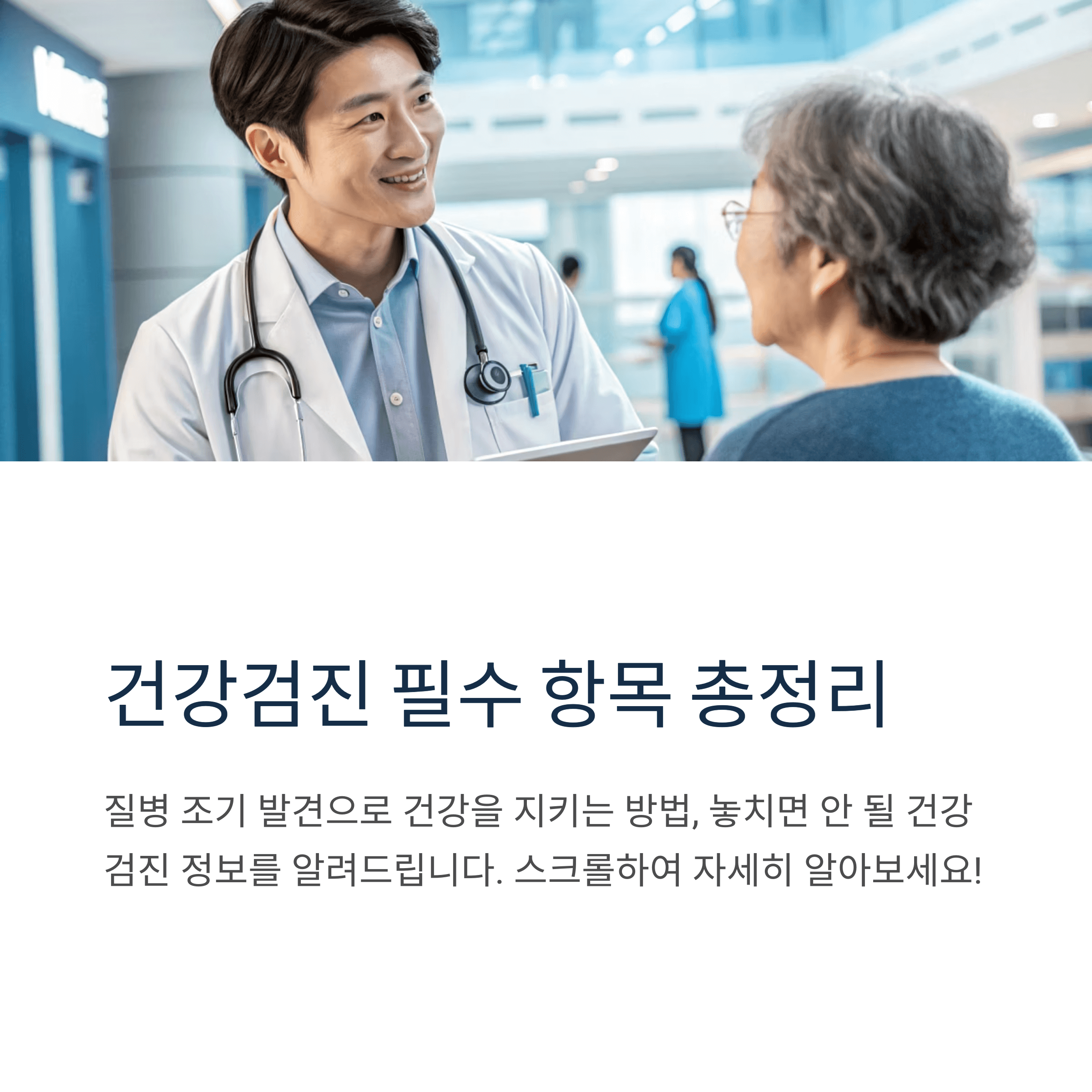 “20대부터 60대까지 연령별로 어떤 건강검진 항목을 받아야 할지 헷갈리시나요? 직장인이라면 특히 어떤 검사가 필요한지도 궁금할 텐데요. 이 글에서는 국민건강보험 기준에 따른 필수 건강검진 항목과 신청 방법, 검진 기간 확인 및 문의처를 정리해 드립니다.”