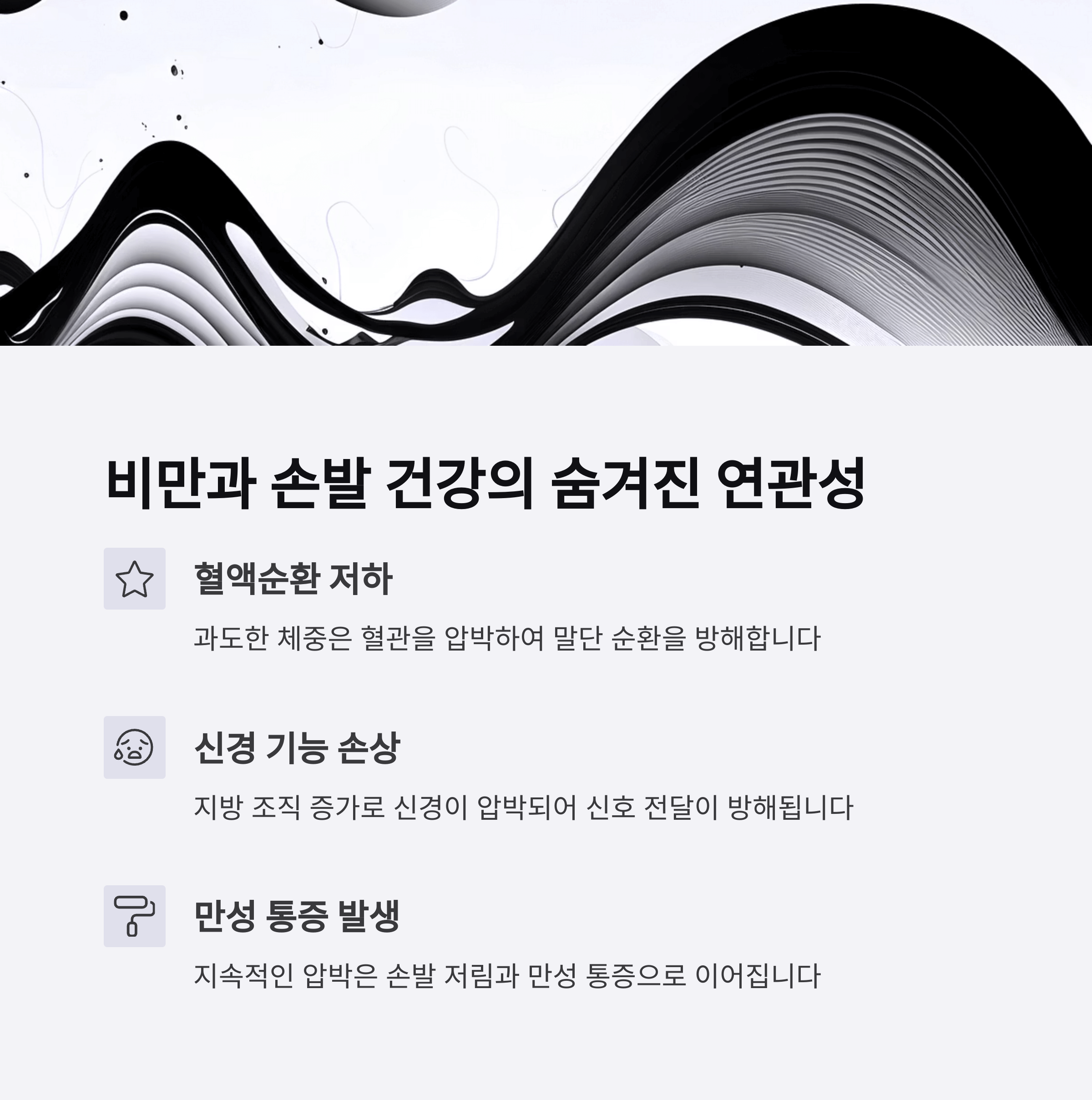 비만이 손발 건강에 주는 영향은 무시할 수 없습니다. 작은 변화가 큰 건강을 지킵니다.