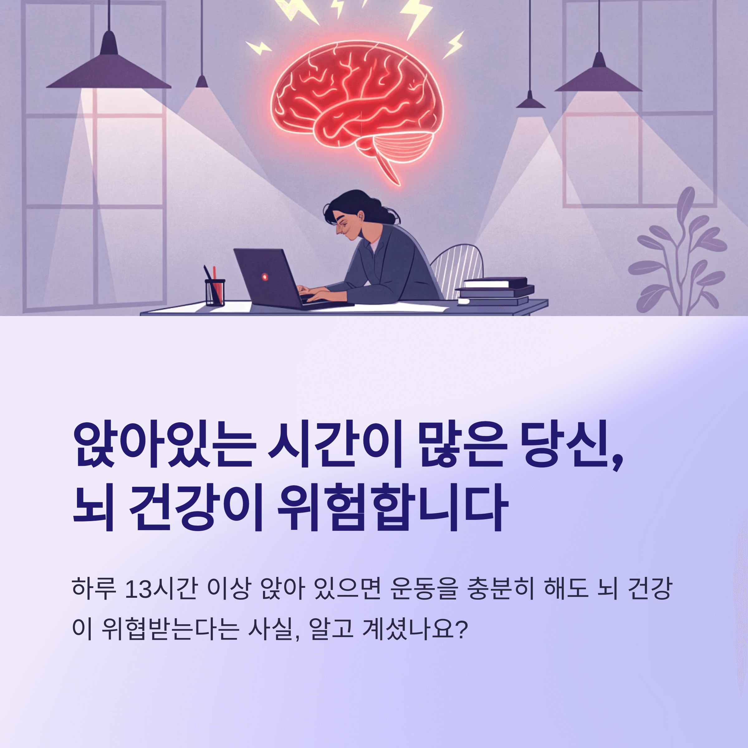 #뇌건강 #장시간앉기 #운동과건강 #치매예방 #사무실운동 #스트레칭 #휴식습관 #앉는시간줄이기 #뇌기능저하예방 #사무직운동법